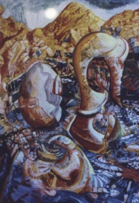 Von einer Amerikakurzreise hatte ich 1997aus Arizona einfache Wasserfarben - wie ich dachte - mitgebracht und damit verschiedene Bilder gemalt, die in meiner Wohnung hingen. Einmal hatte ich über Nacht eine Bekannte zu Besuch. Im Zimmer, in dem sie übernachtete, hing ein Bild, das mit diesen Farben gemalt war. Mitten in jener Vollmondnacht war sie dann aufgewacht und hatte beobachtet, wie die Farben zu Leuchten begannen.
